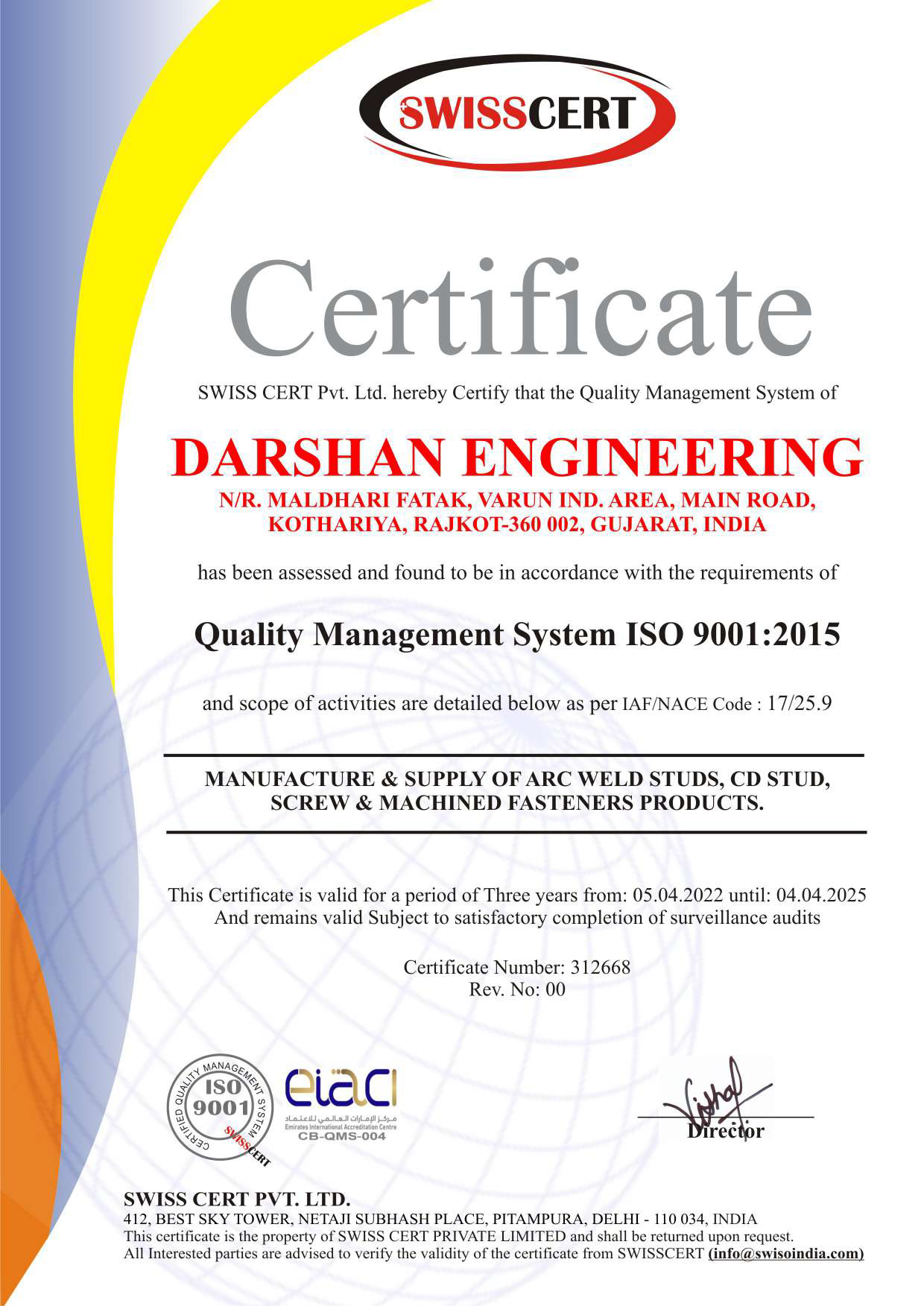 Darshan Engineering - Leading Manufacturer of Drawn Arc Weld Studs in Gujarat, India